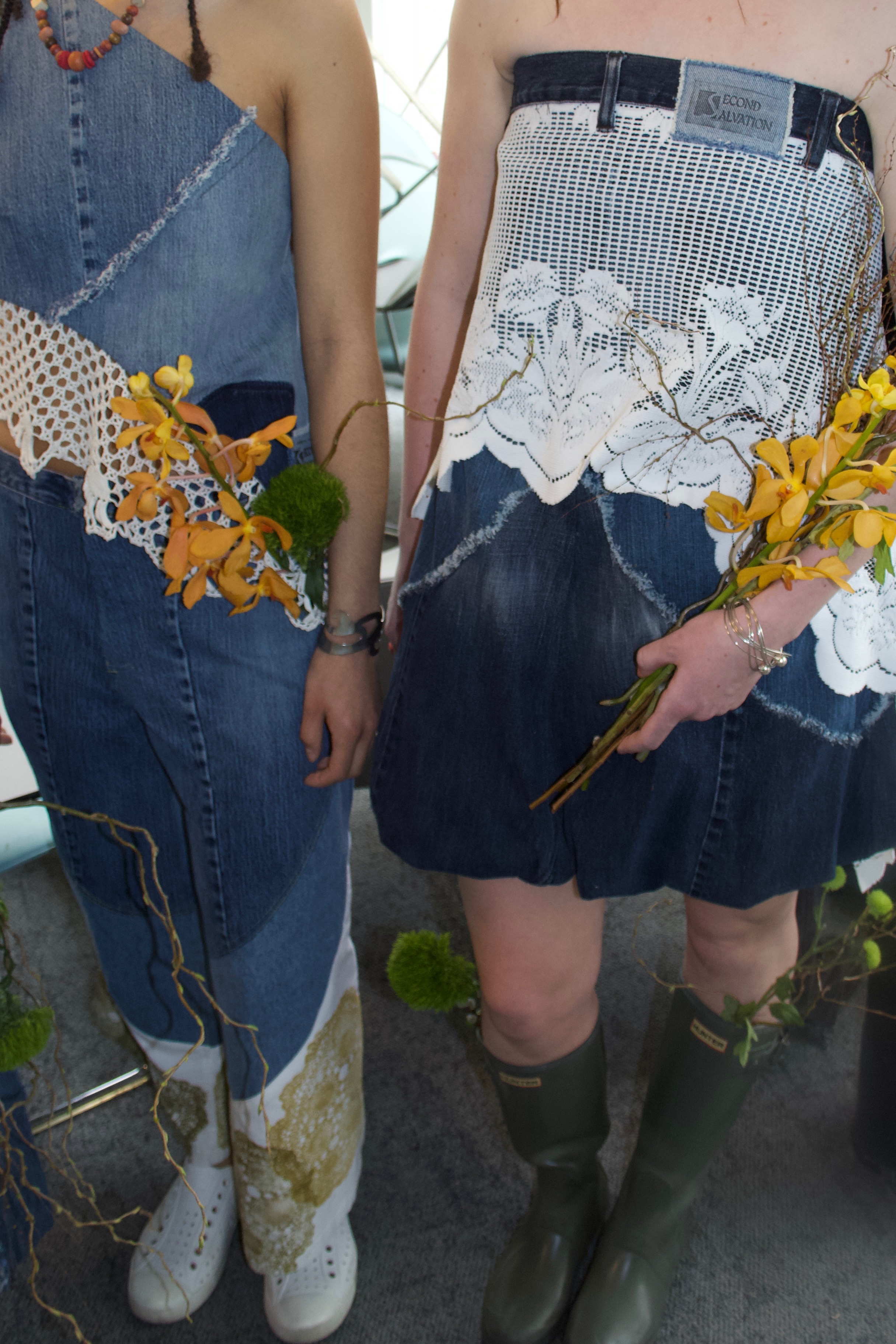 Sophie Petersen’s runway collection, titled Second Salvation, is not a one-off sustainable collection, but a reflection of how she has approached her whole degree. Each of the pieces that she presented in the Mass Exodus runway show were entirely upcycled, using second-hand sourced denim and upcycled vintage doilies. The combination of these two materials to her is both symbiotic and contradictory, while one is delicate and effervescent, the other is heavy-duty and designed to last as workwear.