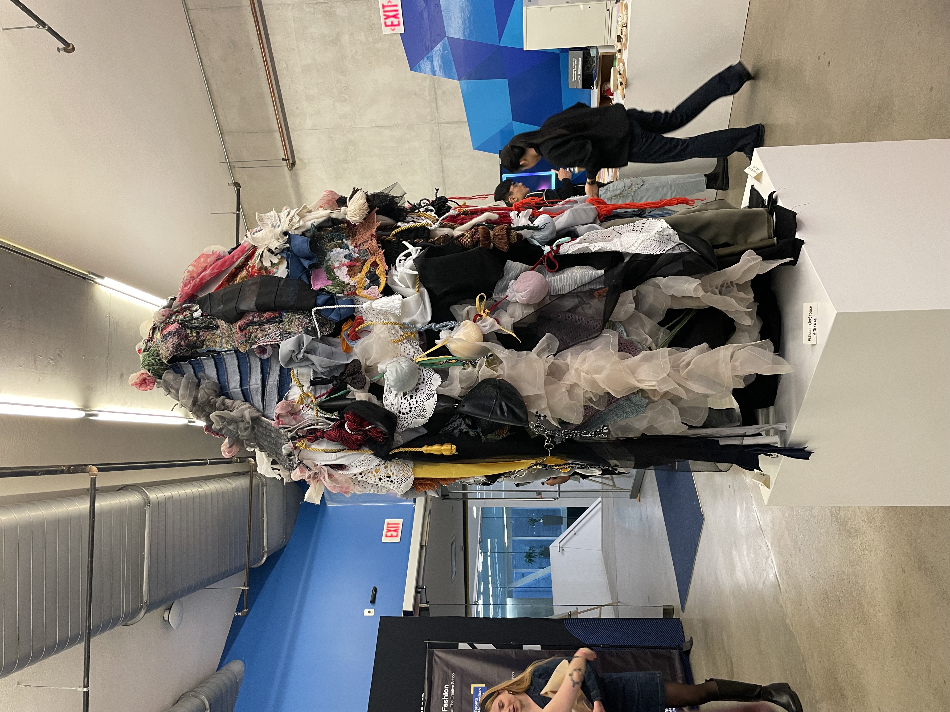 When Mathis Sabanal looks at the sculpture, he’s able to pinpoint where he got most things, giving each individual scrap and thread its own meaning and a personal connection. To anyone else who looks at the piece it can be “what you need it to be”, according to Mathis Sabanal. Just like how fashion can be “everything we need it to be and/or or nothing at all”, this piece is meant to perform as an ambiguous shape that can mean something different depending on the person who is observing it.