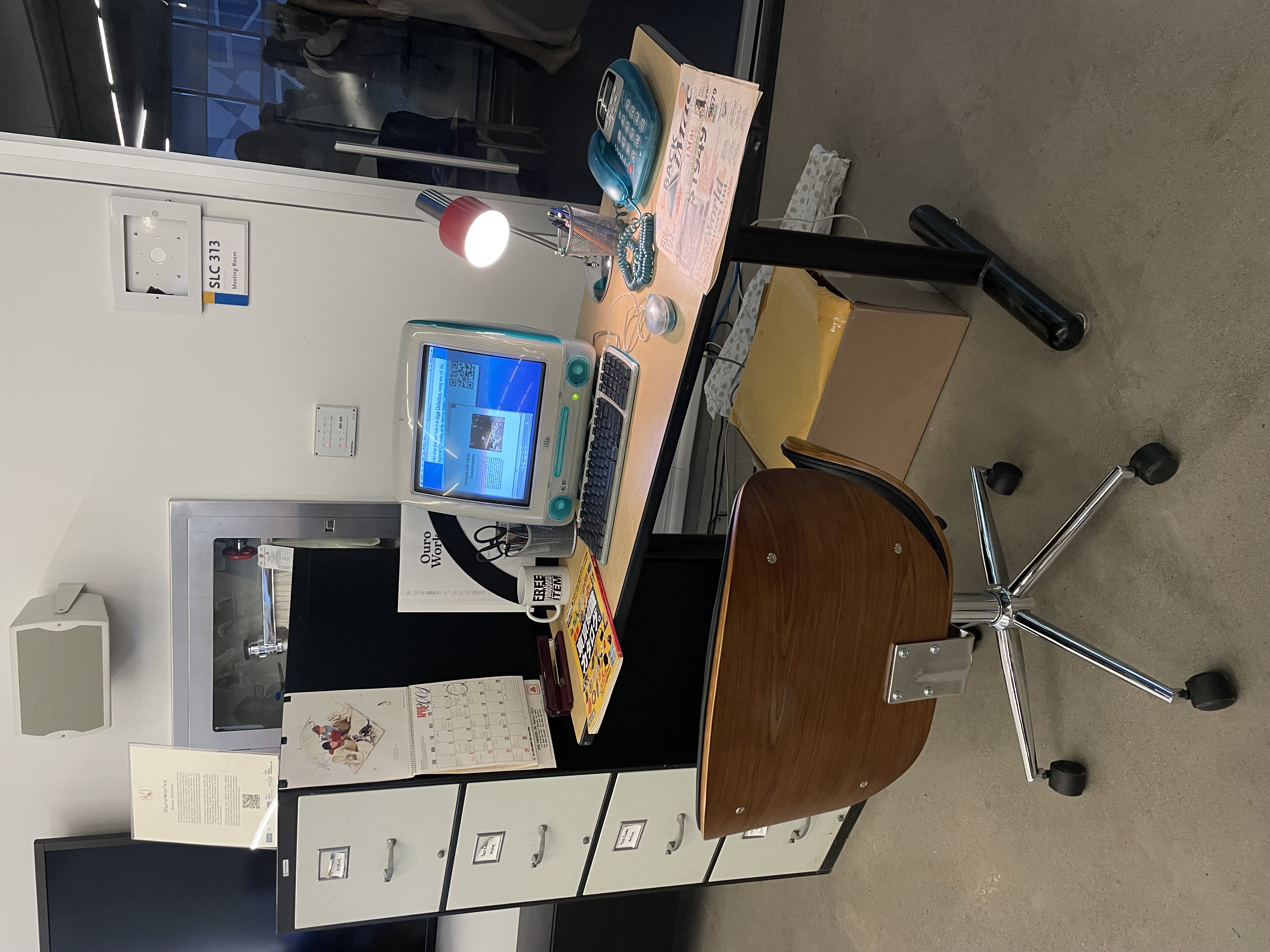 Savas Glacken’s final project is the template and website for a fashion consulting firm, named Ouro Works. For the physical presentation of the website, he remade an office representative of his birth year, with carefully curated details like a second-hand computer and a wall calendar opened to the month April 2001. Glacken initially found a lack of anything similar to what he has conceptualized here. Most consulting firms, even if they do specialize in sustainability, have a general lens instead of a fashion-specific one. Having consulting firms dedicated to sustainable fashion would make these changes more accessible to brands that might not be able to afford someone to work on sustainability initiatives full-time. As the Ouro Works website describes, “we are not just here to advise; we are here to collaborate, co-create, and build a future where fashion is truly circular, ethical, and designed to last.” This emphasizes the concept that perhaps the future of fashion is not about speeding up and creating more, but about slowing down consumption, making more conscious decisions, and fostering meaningful community relationships.